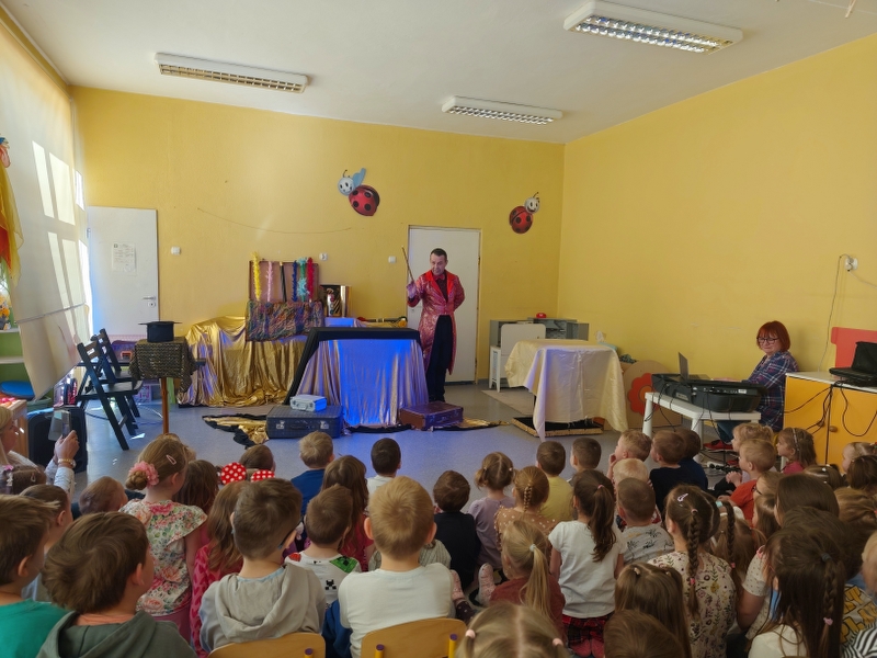 W trakcie występu nie zabrakło zaskoczenia, śmiechu oraz aktywnego udziału przedszkolaków, które z ogromnym zainteresowaniem obserwowały magiczne triki, a niektóre z nich mogły nawet współtworzyć. Spotkanie dostarczyło dzieciom wiele radości i niezapomnianych wrażeń, rozwijając jednocześnie ich wyobraźnię i ciekawość świata.